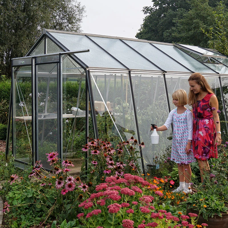 Actionmodellen har en unik design kombinerat med allt vad ett klassiskt växthus behöver. De sluttande sidoväggarna gör detta till det ultimata växthuset för den odlingsintresserade.