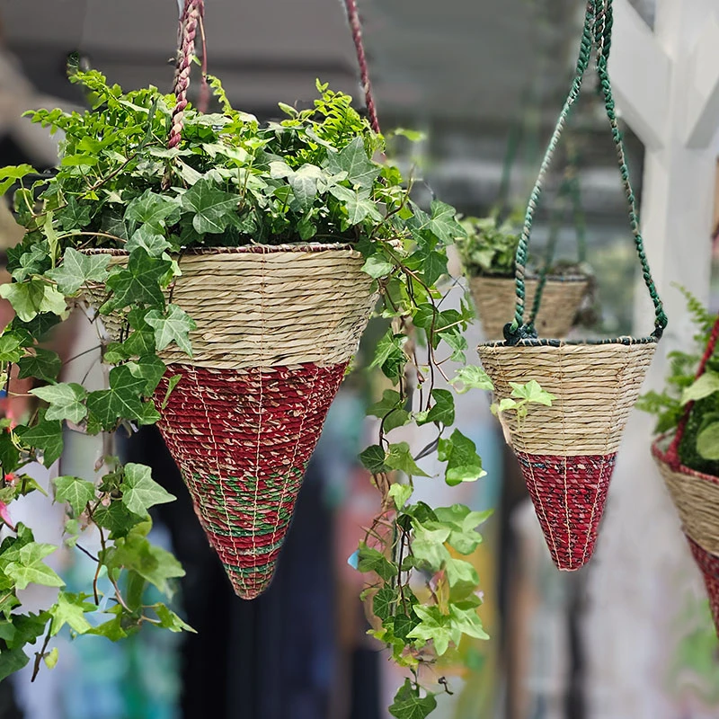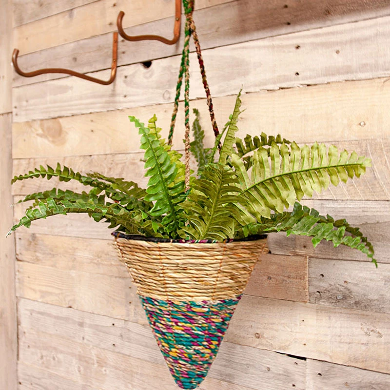 Ampeln har ett inlĂ€gg av Ă„tervunnen plast för att kunna plantera vĂ€xter direkt i. Den gĂ„r Ă€ven utmĂ€rkt att ha som en förvaringskorg.Â
