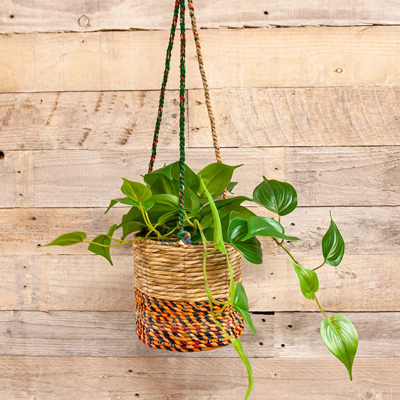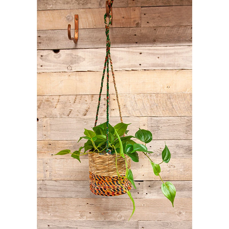 Ampeln har ett inlĂ€gg av Ă„tervunnen plast för att kunna plantera vĂ€xter direkt i. Den gĂ„r Ă€ven utmĂ€rkt att ha som en förvaringskorg.Â