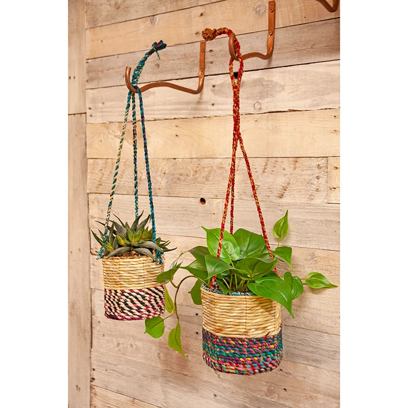 Handgjord hĂ€ngampel av högsta kvalitĂ© av Ă„tervunnen sari. Varje hantverkare vĂ€ljer sina egna fĂ€rgglada sari-mönster vilket gör varje ampel unik och fĂ€rgerna kommer att variera.Â