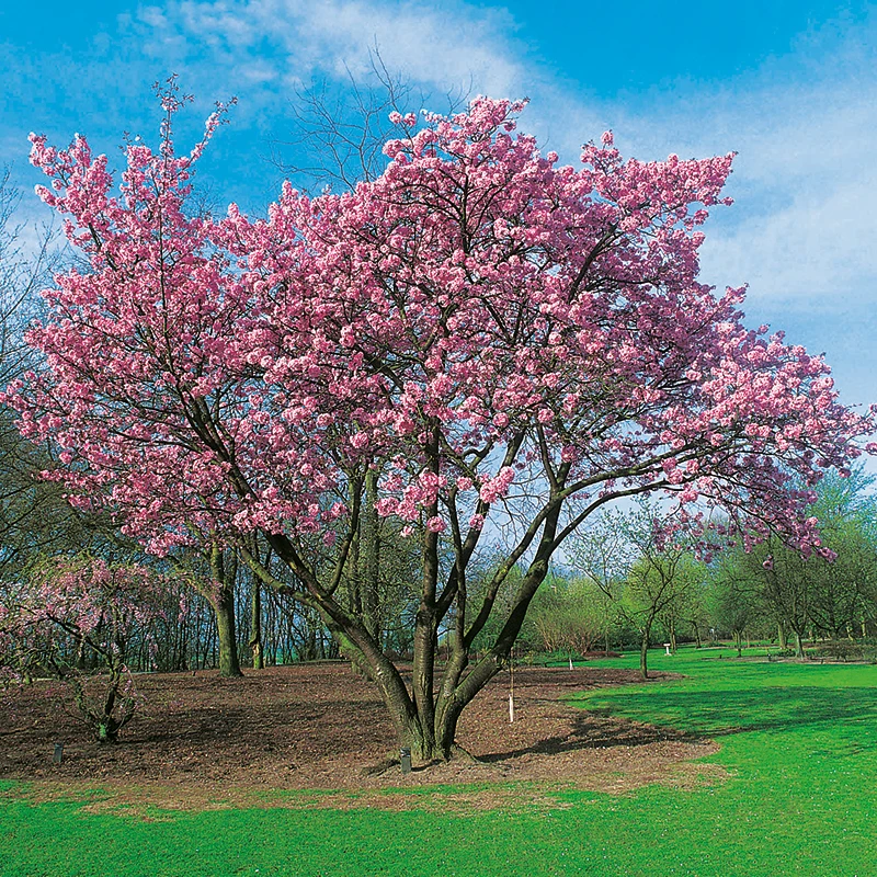 Bergkörsbär är en stor buske eller litet flerstammigt träd. Blomningen sker i Apr/maj strax innan lövsprickning med skyar av stora rosa körsbärsblommor. Frukterna blir dekorativt mörkröda. Bladen är bronsfärgade vid knoppsprickning för att sedan övergå i grönt till lysande mörkröd höstfärg.