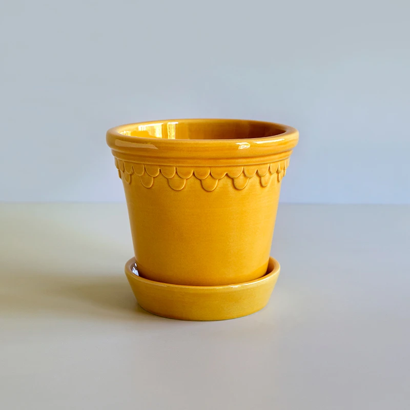 Kruka och fat i italiensk lera från Bergs Potter. Krukan tillverkas enligt Toscansk tradition för hand i Italien och glaseras på traditionellt vis genom att handdoppas. Krukan Köpenhamn kallas ibland Slottskrukan då inspirationen till dess form kommer från en kruka som tillverkades på det danska kungliga slottet Fredensborg under 1860-talet.