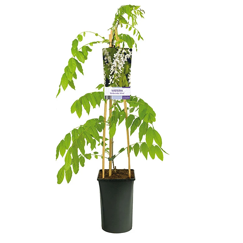 Wisteria floribunda ‘Alba’ är en elegant vitblommig japansk blåregn. Kommer från Japan. Blommar rikligt med vita ärtblommor som är samlade i upp till 60 cm långa hängande klasar under maj-juni. Älskas av fjärilar, bin och humlor. Sorten passar perfekt för att växa mot en solig vägg. Bladen är ljusgröna och blir vacker gult bronsade på hösten. Sorten passar utmärkt för att växa på spaljé mot en solig vägg eller i pergola.