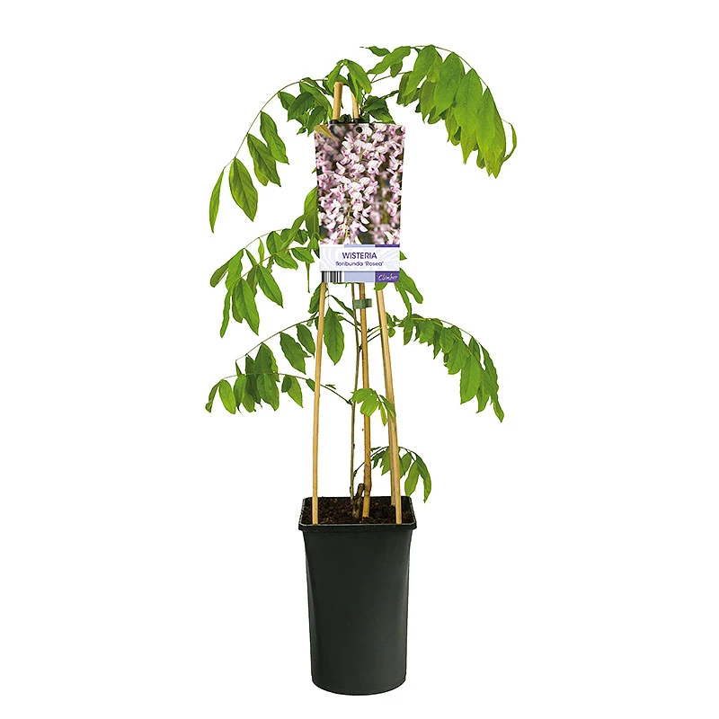 Blåregn ‘Rosea’ är en elegant rosblommig japansk blåregn. Sorten kommer från Japan. Blommar rikligt med ljusrosa ärtblommor med purpurfärgade kanter som är samlade i långa hängande klasar under maj-juni. Älskas av fjärilar, bin och humlor. Sorten passar perfekt för att växa mot en solig vägg. Bladen är ljusgröna och blir vacker gult bronsade på hösten. Sorten passar utmärkt för att växa på spaljer mot en solig vägg eller i pergola.
