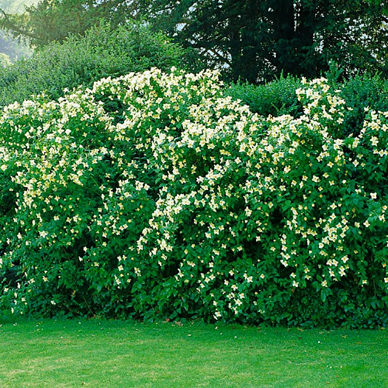 Doftschersmin passar perfekt som stor frivÀxande hÀck. De har ett upprÀtt, rundat vÀxtsÀtt med gröna blad och blir översÄllad av enkla, ljuvligt doftande vita blommor i juni.