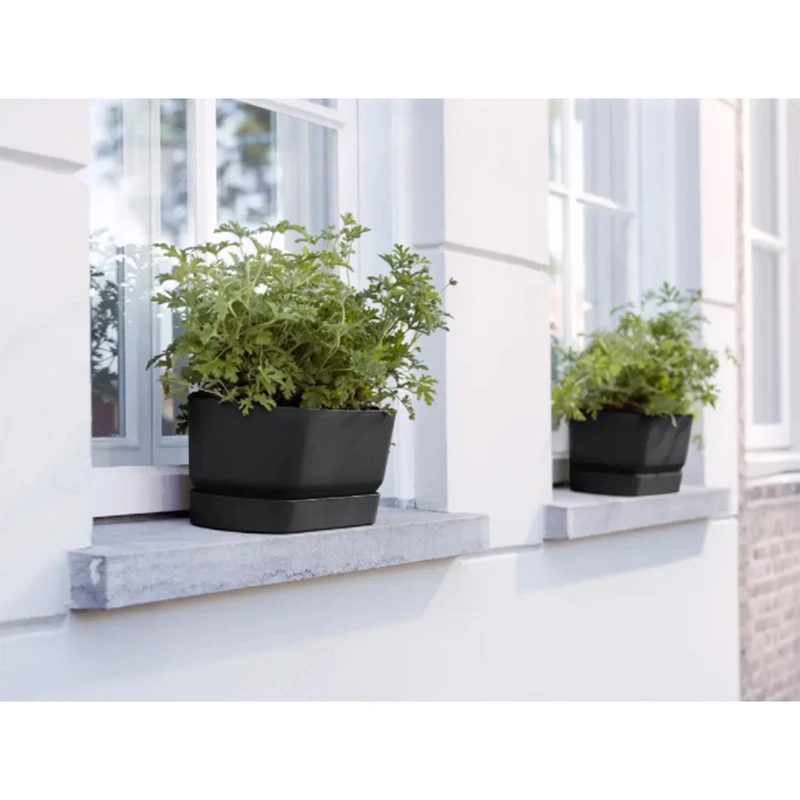Blomlåda Greenville, denna fina designkruka gjord av återvunnen plast är frostbeständig och är därför lämplig för alla årstider i trädgården eller på uteplatsen. Krukan är försedd med en integrerad vattenreservoar för att vattna dina växter tillräckligt