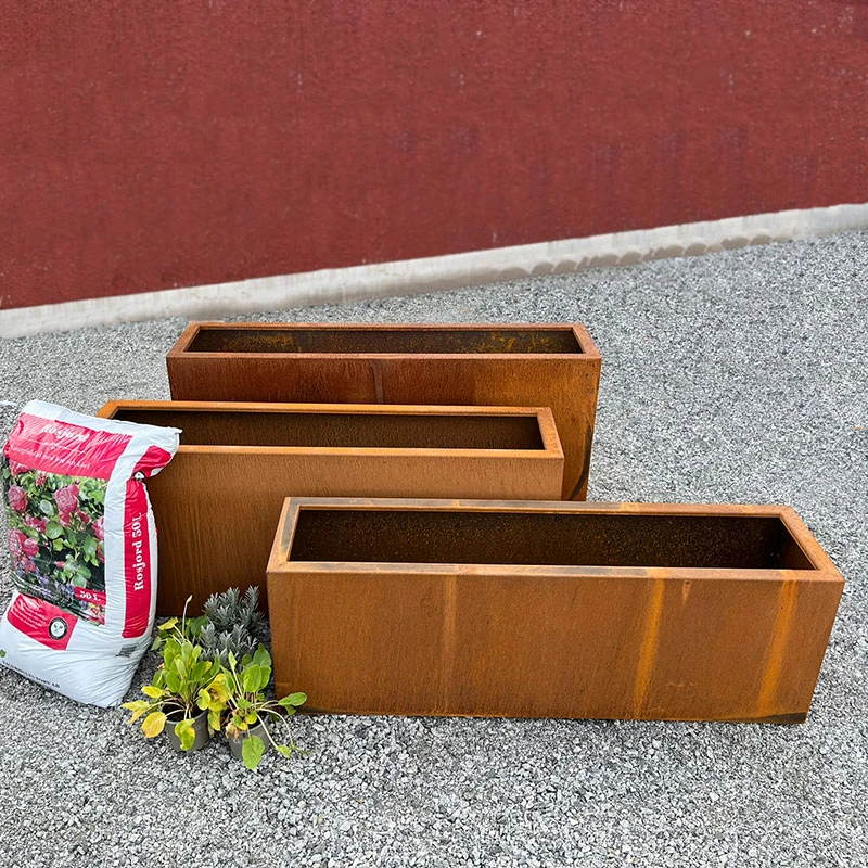 Observera att denna rostkruka i cortenstÄl Àr handgjorda, sÄ det kan förekomma en variation i mÄtten pÄ upp till +/- 2 cm.