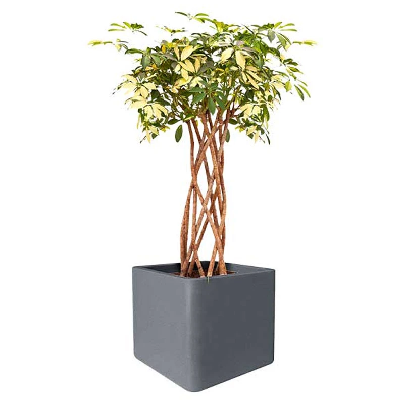 Minimalistisk kruka i fyrkantig design med dolda hjul för enkel förflyttning. Krukan anpassad för både inom- och utomhusbruk. Krukan är försedd med en förhöjd botten så att du inte behöver fylla på hela krukan med jord.