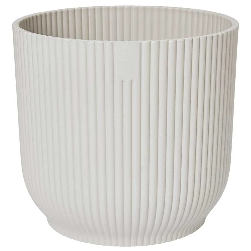Kruka i återvunnen plast för inomhusbruk i modernt och dekorativt mönster i plisserad stil.