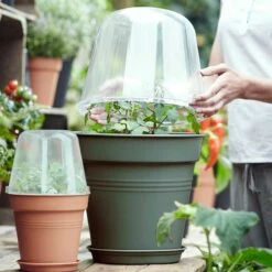 Låt dina plantor, sticklingar och hemodlade grönsaker växa ännu snabbare med minidrivhus från Elho’s ‘Green Basics’-serie.