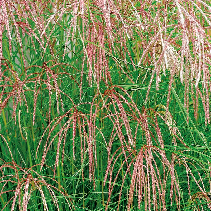 Glansmiskantus ‘Flamingo’ Ă€r ett dekorativ grĂ€s med smala gröna blad och stora glesa rosasilvriga vippor pĂ„ hösten. Klipp ner pĂ„ vĂ„ren. UtmĂ€rkt som solitĂ€r eller vid dammplanteringar eller i kombination med andra grĂ€s och buskar. Vacker grĂ€sform pĂ„ vintern.