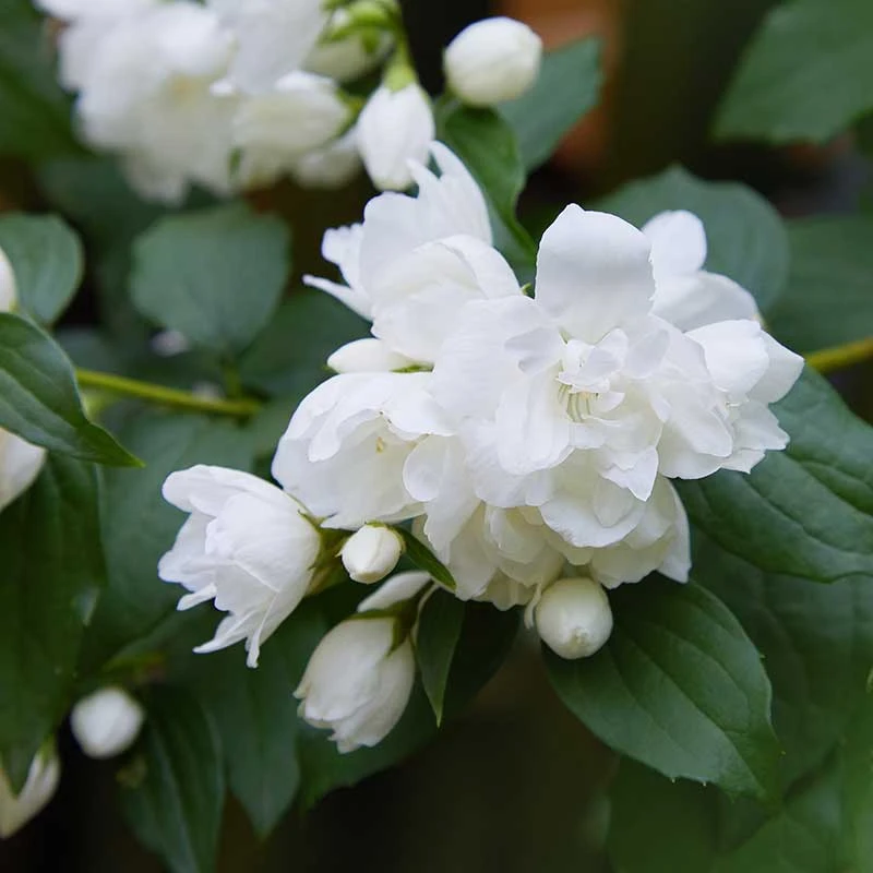 Vetenskapligt namn: Philadelphus (Virginalis-Gruppen) ‘Snowbelle’