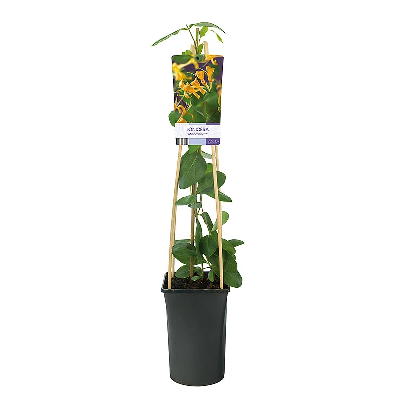 Lonicera ‘Mandarin’ Ă€r en kraftigt vĂ€xande kaprifol. Blommar med rörformade orangeröda blommor, som lockar till sig fjĂ€rilar, bin och humlor. En utmĂ€rkt vĂ€xt att plantera vid staket, vĂ€gg eller mot ett trĂ€d. Sorten Ă€r lĂ€ttodlad med spektakulĂ€ra blommor, som tyvĂ€rr inte doftar.