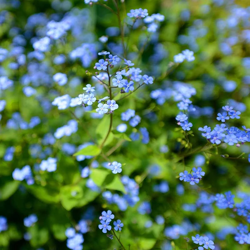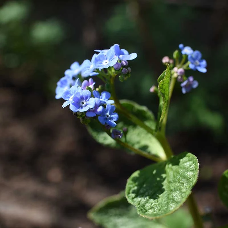 Kaukasisk förgätmigej är en woodlandperenn med stora silvergröna marmorerade blad. Blommar i maj-juni med klarblå förgätmigejliknande blommor. Blir ca 40 cm hög. Trivs bäst i halvskugga. Mycket användbar som marktäckare under träd och buskar samt i samplantering med höga lökväxter.