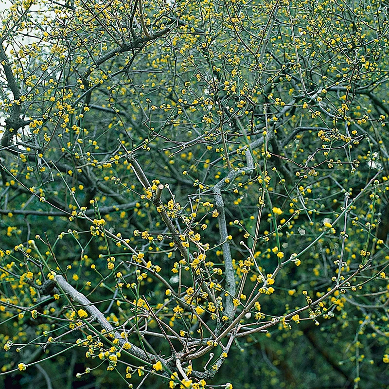 Körsbärskornell är mest känd för sin iögonfallande blomning med gula blommor på bar kvist. Den får röda dekorativa frukter och vacker rödbrun höstfärg. Den är bland de första att blomma på våren och tillsammans med t.ex. Scilla sibirica under är det fantastiskt effektfullt. Tål de flesta jordar men gärna lerjord med högt PH. Den blir som fullvuxen 4-6m hög och kan med fördel klippas upp till litet träd.