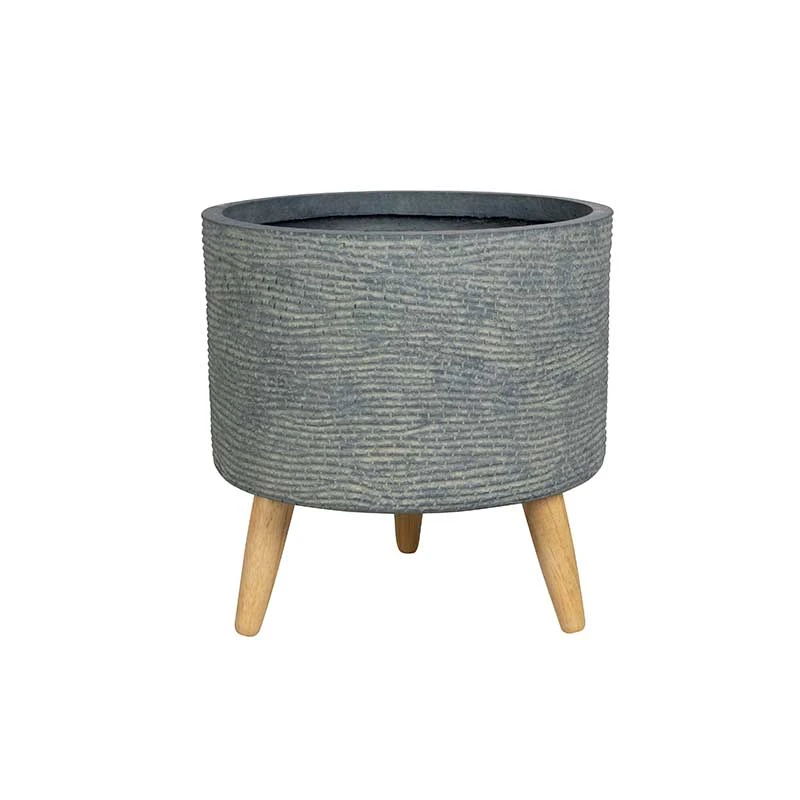 Kruka med modern design. Riva Ă€r handgjorda krukor av cement med ben av trĂ€.Â