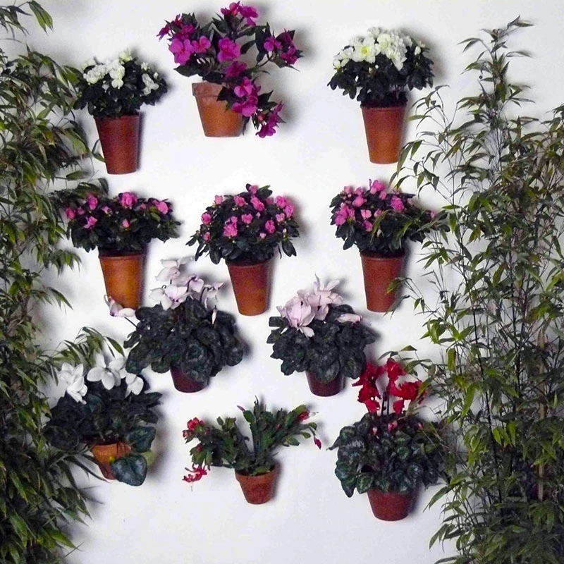 Smidig och säker upphängning av blomkrukor mot vägg och plank.