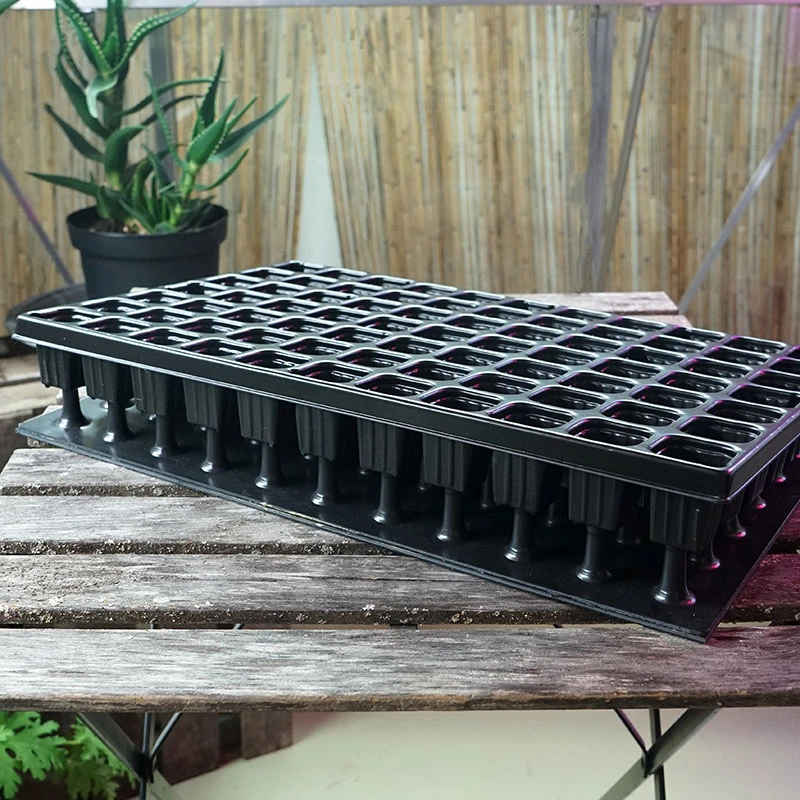 Uttryckningsplatta med 77 piggar för snabb och enkel avlÀgsning av vÀxter frÄn pluggbrÀtten med 77 celler.