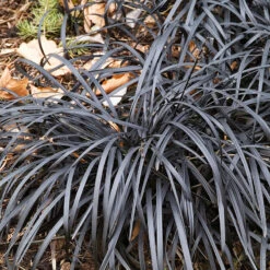 Ophiopogon ‘Niger’ är ett tuvbildande gräs med mörkbruna-svarta blad, som håller färgen året runt. Blommar med små ljus rosa blommor i juli-augusti, som kommer att bli glänsande svarta bär på hösten och vinter. Passar utmärkt för plantering i en kruka eller i kombination med stenparti. Sorten är rätt så långväxande men lättodlad. Bra marktäckare.
