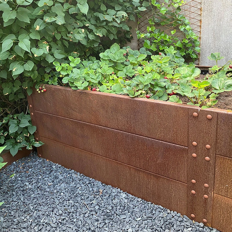 Cortenplåt får med tiden en jämn roststruktur som blir mycket vacker. Efter ca två år avstannar rostningen och bildar ett skyddande lager som finns i stålet som hindrar det från att rosta igenom och lådan blir mycket hållbar.