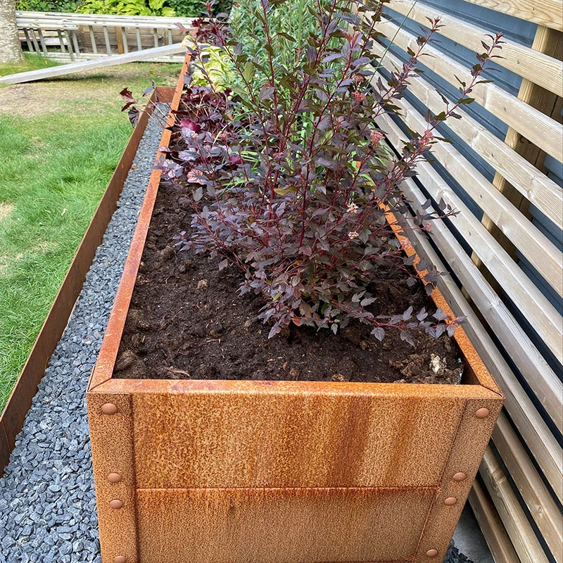 Cortenplåt får med tiden en jämn roststruktur som blir mycket vacker. Efter ca två år avstannar rostningen och bildar ett skyddande lager som finns i stålet som hindrar det från att rosta igenom och lådan blir mycket hållbar.