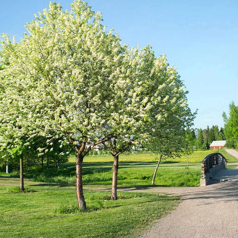 Oxel eller “Swedish Whitebeam” växer vild i många delar av Sverige. Stort, tåligt träd med rund tät förgrenad krona. I maj-juni blommar med flockar av vita små blommor som lockar mycket insekter och fjärilar. På hösten kommer orangeröda bär som äts av fåglar. Tål vind, salt och torka och trivs nästan överallt. Prefekt träd till ett blåsigt läge. Passar i stadsplaneringar, alléer och även för att användas till häckar.