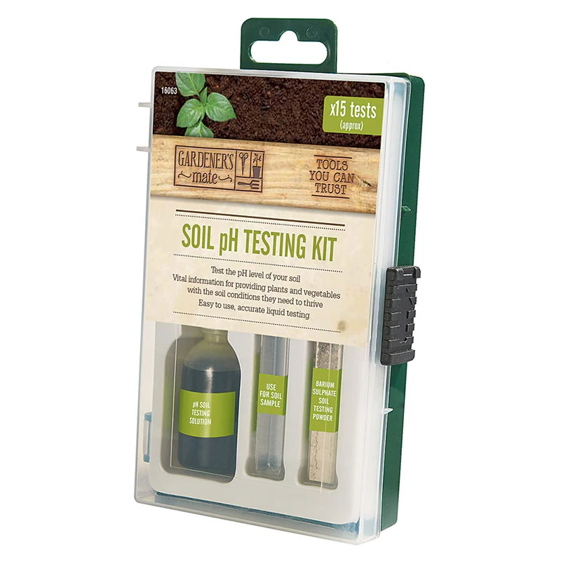 pH-kit som användsför att testa jordens pH-nivå. Lätt att använda med instruktioner som ingår och räcker till cirka 15 tester.