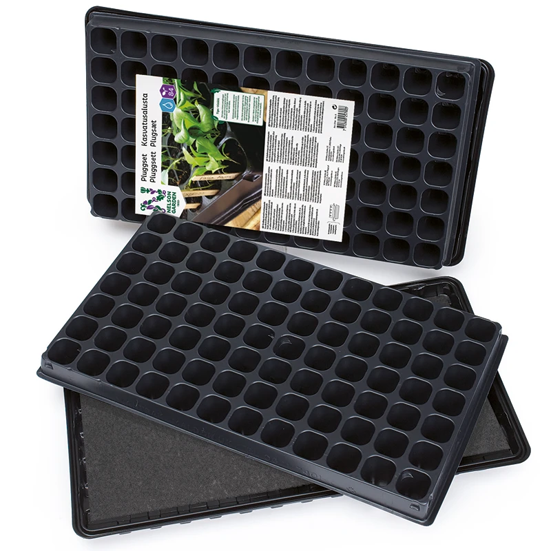 Innehåller: Bottentråg, bevattningsmatta, pluggbrätte med 84 celler.