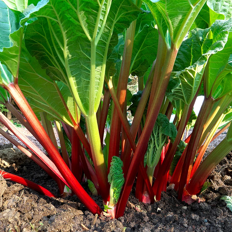Rabarber Red Champagne även kallad vinrabraber. Sort som ger hög skörd med mild smak. Stjälkar är röda och långsmala. Rabarber med syrlig smak, som passar utmärkt till saft. Oxalsyra är medelmåttig. Kan skördas från april till augusti. Bör ej skördas det första året.