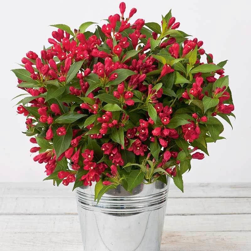 Rosenprakttry All Summer Red Àr en kompakt buske. Namn All summer betyder att sorten blommar kontinuerligt med mjuka röda trattformade blommor under lÄng tid frÄn juni till september/oktober. Detta Àr en lysande skönhet att ha i en kruka vid entre. LÀttodlad buske.