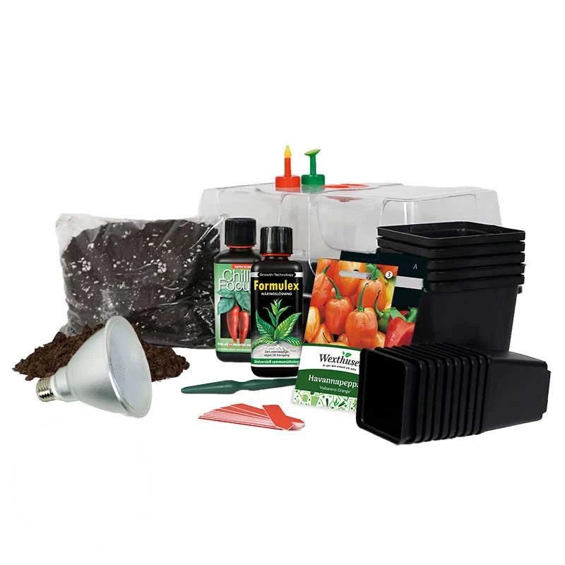 Ett drömpaket för chiliodlaren med allt som behövs för att driva upp och odla chili dÀrhemma.