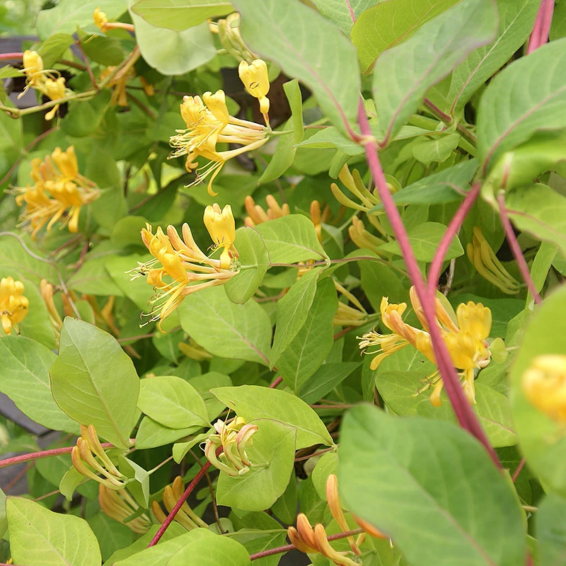 Får underbart doftande blommor i juni och juli. Blommorna är intensivt orangegula aningen trumpetformade och sitter i små klasar.