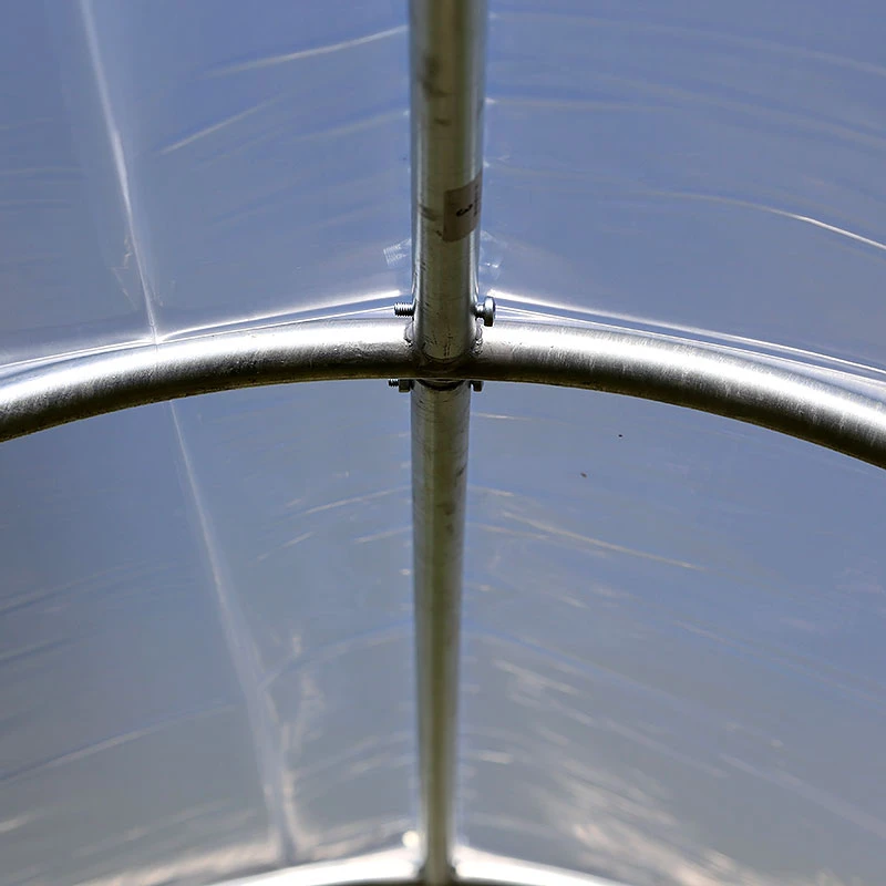 Tunnelväxthusens profiler är tillverkade av galvaniserade och varmförzinkade stålrör som är 1-1,2 mm tjocka och mäter 25 mm i diameter.