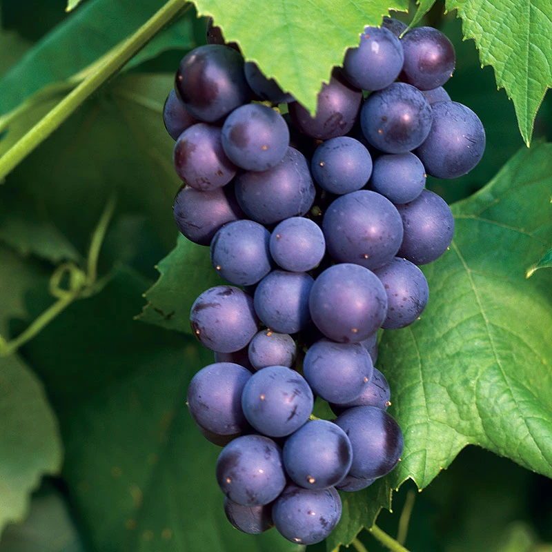 Druvklasarna som sitter pÄ sidogrenarna Àr till en början ljusgröna smÄ konstverk som under sÀsongen mognar fram och skiftar i blÄlila fÀrger och blir saftigt mogna i aug-sept.